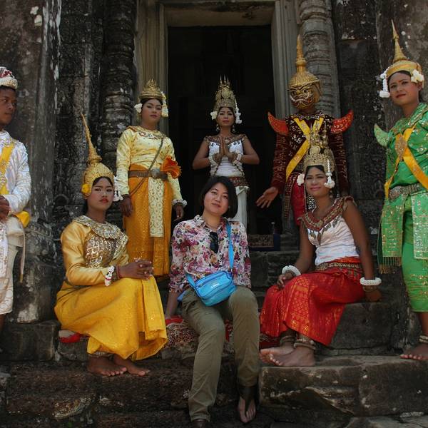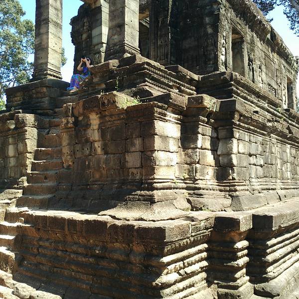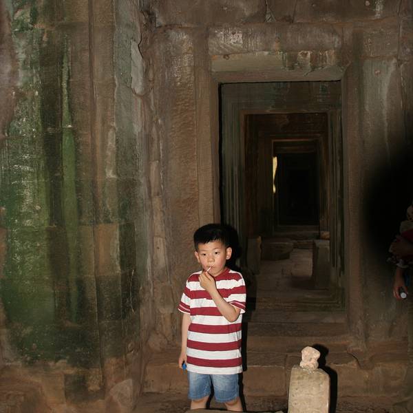 巴戎寺外可以骑大象,绕行巴戎寺一圈,很特别的体验,摇来晃去的,感觉坐的腰很酸,不过小朋友玩的很开心。最著名的吴哥的微笑,在巴戎寺随处可见。巴戎寺的石雕很精美。爬到巴戎寺上层,有穿着当地精致的传统服饰的人员,可以和他们合影,拍完给1美元即可。1美元那么多人分,虽然只是坐着不动等拍照,但是在暴晒的太阳下坐一天其实也蛮辛苦的,这钱不好挣呢。巴戎寺内部有很多这种样式的方的石框里一个石柱,耳朵里刮到几句西方游客找的英文导游的介绍,说到mother和father,应该是生殖崇拜吧。虽说巴戎寺是吴哥比较著名的景点,但是和国内的人山人海相比,这里的游客也不算非常多,想要摄影创作也不是什么难事。 展开