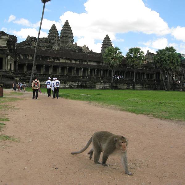 值得一提的是寺庙之墙壁上仍保存着丰富且生动之雕刻,举凡古代战争记述、寻常百姓之生活百态、洞里萨湖之湖畔风光等皆充分透露着当时之情景,绝对是不可不看的珍贵史迹。那一幅幅活灵活现的壁画彷佛诉说着一段段遥远的故事。巴戎寺外面有很多猴子,而且不怕人。我刚买的一袋水果就被打劫了。 展开