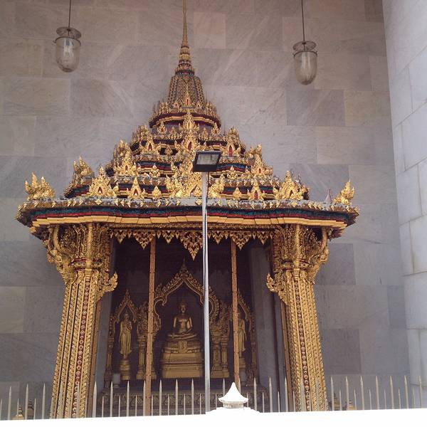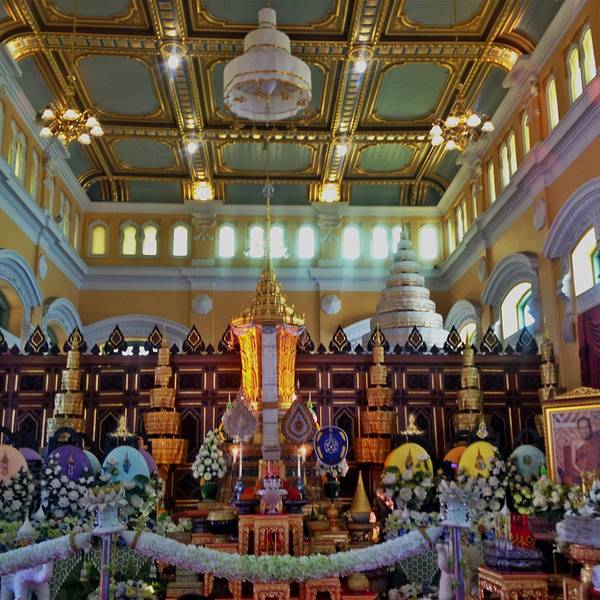 僧王寺位于考山路街区,但是不被一般游客所熟知,有种大隐隐于市之感。初次造访的游客可以借助GPS找到它。大殿佛像是Phutthachinnasi佛,传说该佛约建于1357年中式的雕像寺庙有座大金塔,虽没有大皇宫的金塔宏伟,但是金塔周围的神像也颇为有趣。金塔前供奉的是拉玛五式的圣像几经徘徊,我来到了已故僧王的故居。故居内安放着僧王的灵棺,来访朝拜的人络绎不绝。就连僧舍也弥漫着浪漫的教堂气息