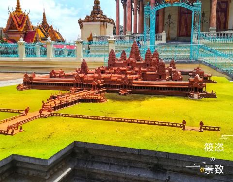 银殿边上靠近出口的地方,有小吴哥的模型,做工十分精细,让我们又回忆起了吴哥窟的美丽走出皇宫的小门,经过两个围墙之间的小路,来到了银殿。首先映入眼帘的是围墙回廊上绘制的大型壁画,这些色彩艳丽的壁画由40位艺术家,历经十年心血精心完成,有战争场面、市井生活、龙舟比赛等等,被柬埔寨人视...走出皇宫的小门,经过两个围墙之间的小路,来到了银殿。首先映入眼帘的是围墙回廊上绘制的大型壁画,这些色彩艳丽的壁画由40位艺术家,历经十年心血精心完成,有战争场面、市井生活、龙舟比赛等等,被柬埔寨人视为瑰宝! 皇宫内最奢华的宫殿是银殿,殿内地板由每块1.125公斤重的银砖铺设而成,共计5329块,达5吨重。寺中央有自一尊为了纪念西索瓦国王打造的18K金佛像,佛身上镶嵌9584颗钻石,最大的一颗钻石达到25克拉,很难想象曾经的柬埔寨是多么的富有! 在银殿的院内,有诺罗敦国王、安东国王的骨灰塔,西南面有一座西哈努克的女儿甘达帕花公主的小骨灰塔。甘达帕花是西哈努克非常疼爱的女儿,4岁时死于白血病。院内还有一座法式建筑,是法国国王拿破仑三世赠送给诺罗敦国王的骑马铜像。 银殿边上靠近出口的地方,有小吴哥的模型,做工十分精细,让我们又回忆起了吴哥窟的美丽! 展开