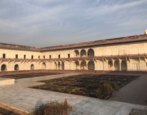 以为只是一般的花园,可是漂亮的曲线分隔里,貌似什么也没有种,四周的建筑,都是妃子住的,还不太好...阿格拉堡里面的一个庭院,看不出是种葡萄的,也没有架子,以为只是一般的花园,可是漂亮的曲线分隔里,貌似什么也没有种,四周的建筑,都是妃子住的,还不太好分辨哪间房是谁的吧?