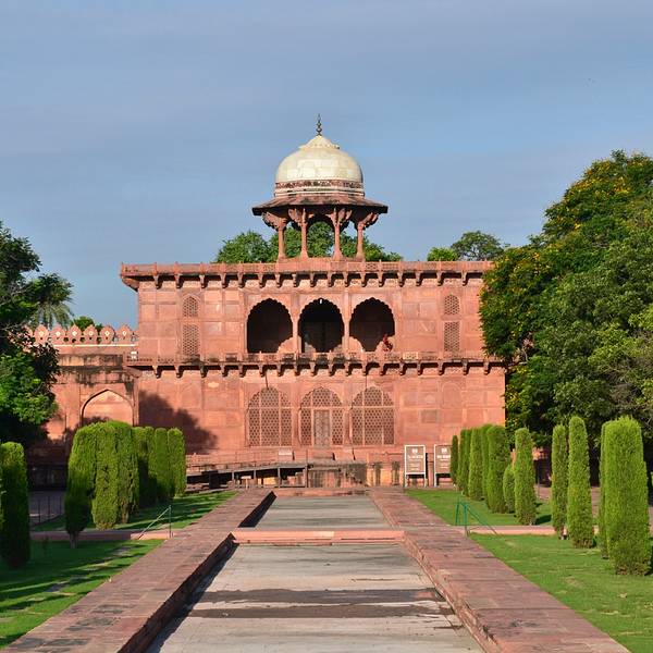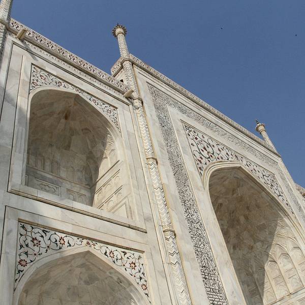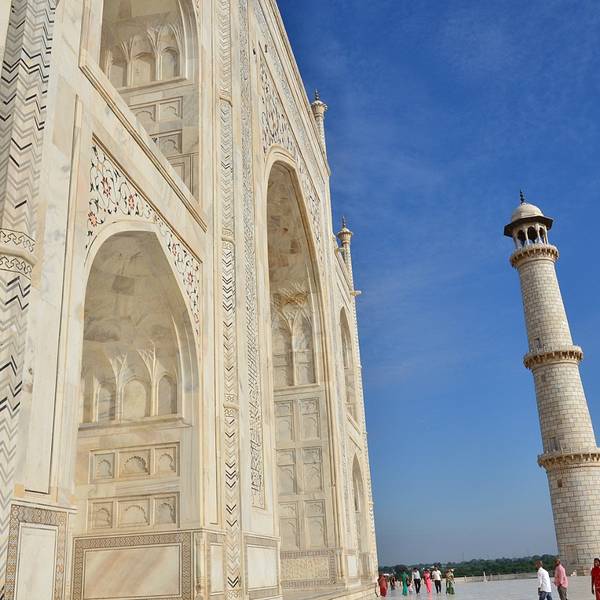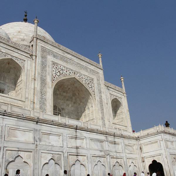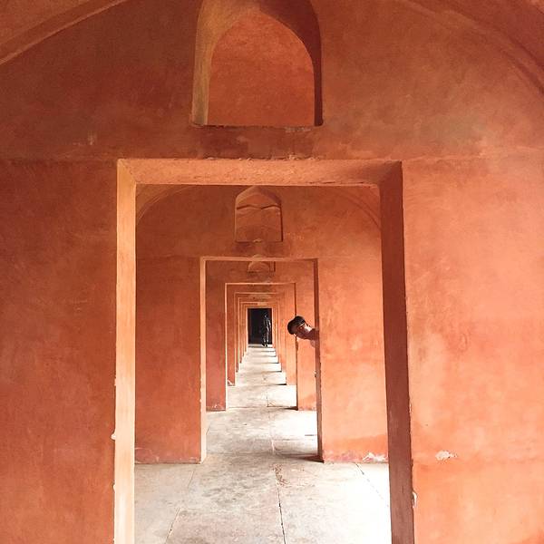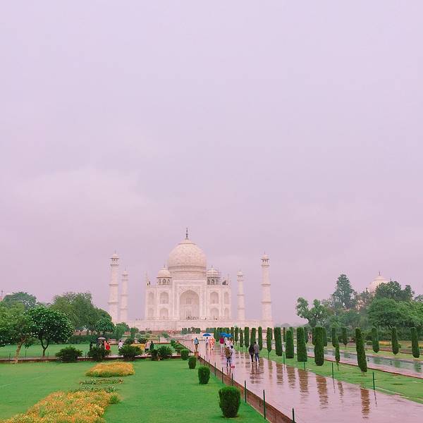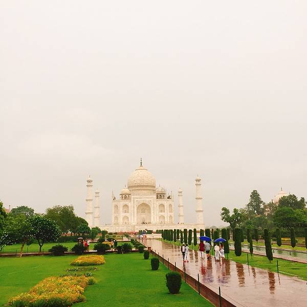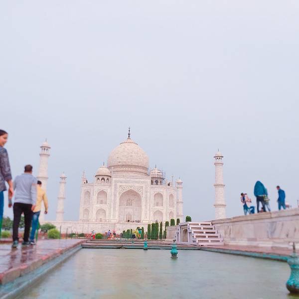 泰姬陵是来印度必看的景点,被诗人泰戈尔盛赞为“一滴永恒的泪珠”。泰姬陵1654年竣工,是莫卧儿王朝皇帝沙贾汗为皇后阿姬曼·芭奴耗巨资所造。这座宫殿式陵墓主要由纯白色大理石建造,镶嵌着来自世界各地的宝石。泰姬陵还有着完全对称的建筑美学,集印度和波斯建筑艺术于一体。整个建筑群包括前庭、正门、陵墓主体等景点。可以从西、东、南三个入口进入前庭,再从正门进入。中间有一个大理石水池,名为Hawd al-Kawthar(意为“丰盛之池”),水中的泰姬陵倒影清晰可见。水池旁有一张长凳吸引了很多游客坐上去拍照,这里是戴安娜王妃参观泰姬陵时留影的地方。水池的尽头,凸起的大理石平台上就是泰姬陵了,陵墓四角各有一座高塔,陵墓主体呈八角形,中间是半球型的大圆顶,配有莲花装饰,周围还有四个小圆顶。主陵墓入口两边的墙上刻着诗经,进到内部可以看到一大一小两座石棺,不过沙贾汗与皇后却长眠在地下另一土窖中。陵墓内部只靠室外透入的阳光照明,这里是不允许拍照的。主陵墓的东西两侧各有一个寺院,西边的是祈祷跪拜所用,而东边的主要是为了保持对称美。在不同时间和光线下,泰姬陵还有着各不相同的面貌。清晨是温暖的金橙色,日光下是白色,黄昏时从金色逐渐变成粉红、暗红,而到月亮初升之际,又成了银白色。在两边寺院的一角,可以拍出透过拱廊看到的泰姬陵,也别有趣味。