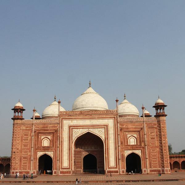 泰姬陵其实并不仅仅只有那个白色的宫殿,还有其他好几座偏殿的,就是照片上这些红色系的。