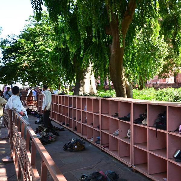 泰姬陵里面有不少当地人会主动提出来给你们拍照,他们通常知道一些比较好的拍照位置,但事后需要给他们小费,20卢比即可。走上泰姬陵的大理石建筑,游客需要赤脚或者在鞋子上套鞋套,鞋套买票的时候会一道发,没有鞋套的可以将鞋子寄存。