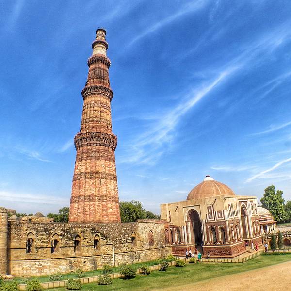 库特布塔为一处世界遗产,距德里约15公里,是德里的一处标志性建筑,遗址虽以古塔最为著名,但其周围还有许多其他遗迹,包括几座古墓、一座伊斯兰大学和著名的大铁柱。除了4世纪的大铁柱外,其他古迹均建成于三代国王统治期内。顾特卜塔是一处高约73米的胜利塔, 1193年顾特卜塔因皇帝在战胜德里的最后一个王国后,立即建造了此塔, 13世纪工程完工。它标志着伊斯兰教在该市占统治地位。塔内的楼梯极陡峭,1979年一个旅游团因在塔内惊跑而造成数人伤亡,此塔内部也随之对外关闭。关于古德卜尖塔的历史,有各种各样的说法,一说是由德里苏丹国的皇帝顾特卜德丁.艾巴克所建;一说是由德里统治者所建。但一般认为,该塔不是一朝一代的功劳,也非一次建成,而是经过多次续建而成。