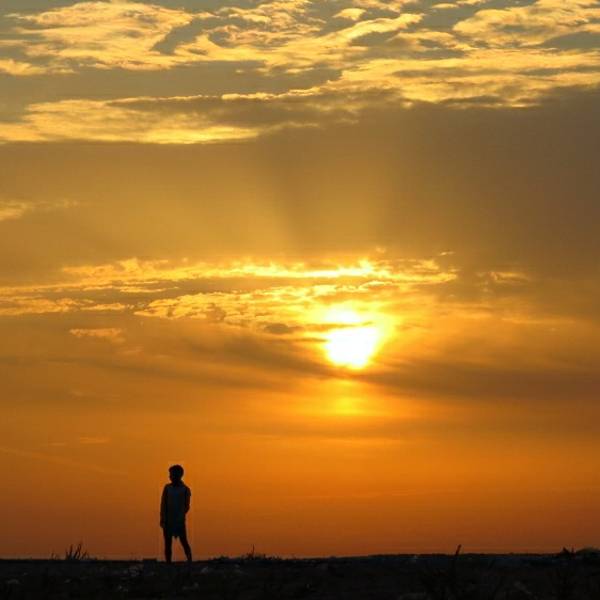 ✨日出✨: 太阳缓缓升起,天边开始变暖,暖与冷色调的渐层之下,呼应着孤独的帐篷与小孩,拍照特有感觉~