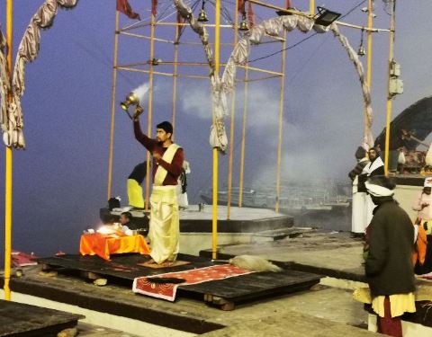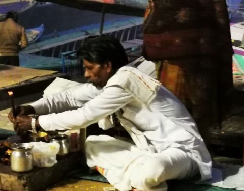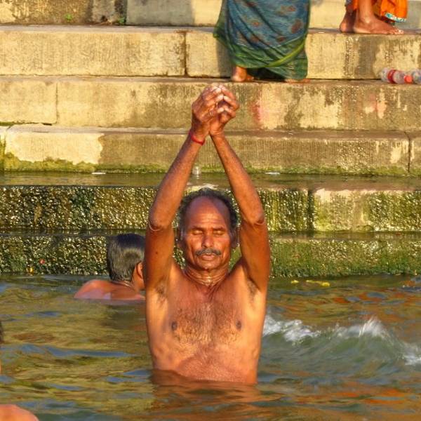 弥补了没有看到日出的遗憾。更多的当地人步入河中开始圣神的晨浴。恒河晨浴 体验了夜祭,晨浴也不想错过恒河晨浴 体验了夜祭,晨浴也不想错过。 夜色还没有退尽,带着一丝倦意在导游的催促下坐上了拖拖车,沿街的小店还没有开门,屋檐下乞丐紧紧裹着毯子还在睡梦中,路上的行人明显要比晚上少。 瓦拉纳西是当之无愧...恒河晨浴 体验了夜祭,晨浴也不想错过。 夜色还没有退尽,带着一丝倦意在导游的催促下坐上了拖拖车,沿街的小店还没有开门,屋檐下乞丐紧紧裹着毯子还在睡梦中,路上的行人明显要比晚上少。 瓦拉纳西是当之无愧的圣城。因为在印度,人的一生要做的四件事都能在这里完成。在恒河中沐浴圣水、拜祭瓦拉纳西的湿婆庙、结交圣人、死后归于恒河。 在夜祭台上现在是晨祭,规模不大。周围虔诚的圣徒在理发刮胡,为晨浴作准备;有的面对恒河双手合十,闭眼祈祷;也有小贩在兜售恒河水;更多的当地人步入河中开始圣神的晨浴。 预约好的船在河边等候,晨雾很大,能见度低,坐在船上看不到岸,买了包喂海鸥的食物,一把把撒向空中,成群的海鸥围着我们的船飞舞。弥补了没有看到日出的遗憾。 展开