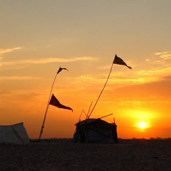 ✨5:20 到达恒河彼岸,平坦广阔的沙地,支着几个帐篷,像是孤独的留守;