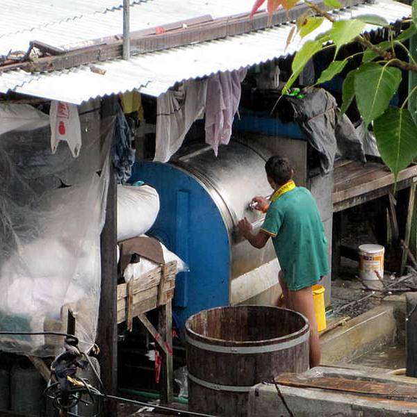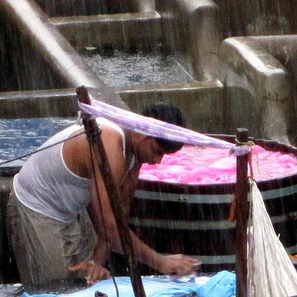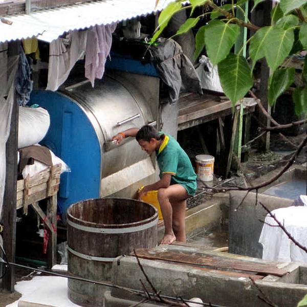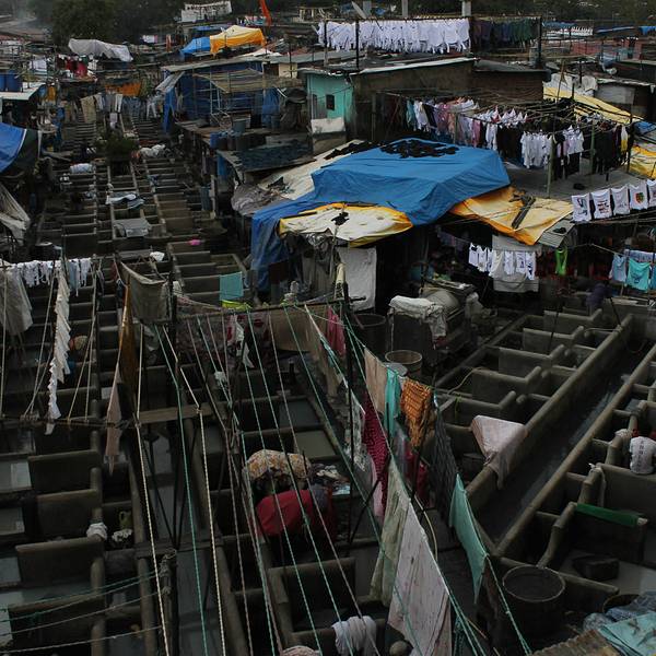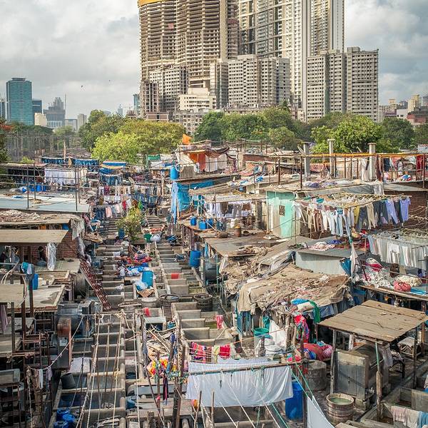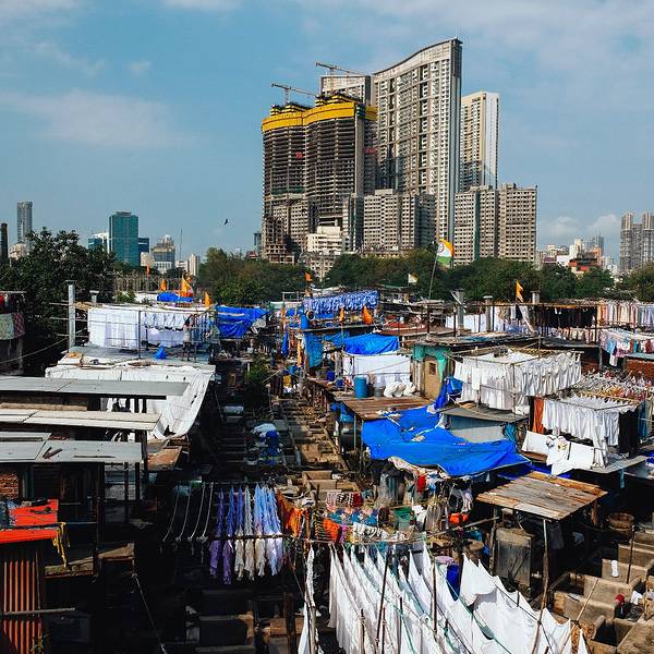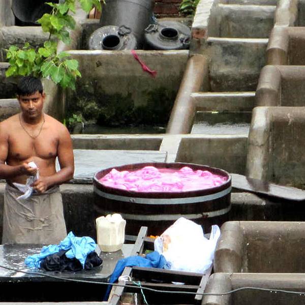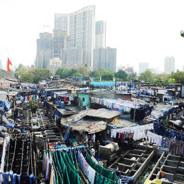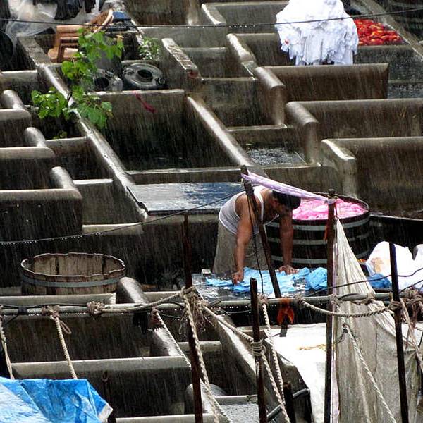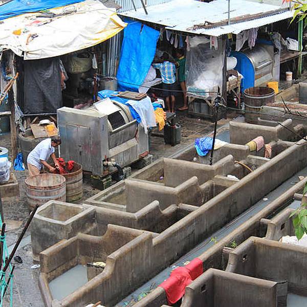 洗衣场的英文名译音是“都比嘎特”,印地语意为“洗衣人的码头”。“都比”在当地是个姓氏,也是印度教“苏德拉”种姓的一部分。这个种姓又分成许多亚种姓,每个种姓都从事不同却固定的世袭职业,“都比”专指洗衣人。百年来“都比”厮守着祖辈传下来的这份职业,使得他们的职业和身份可以世代相传。据说千人洗衣场是100多年前孟买的一项市政设施,100多年前,孟买很少有自来水,加上季风气候明显,每年长达几个月的旱季常滴雨不下,大小河道一律干枯,洗衣难成了政府必须面对的头等大事。于是,露天洗衣场应运而生,成为当时值得夸耀的一项市政工程,专为大大小小的洗衣店提供公共洗衣场所,堪称一座大型的“洗衣集市”。洗衣场建成时,总共有800多个水池,可同时容纳千人同时洗衣,迄今它仍然保留着手工清洗、露天晾晒衣物的传统方式。