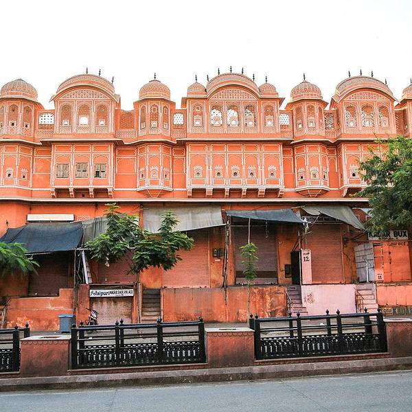 起初整座建筑的独特设计,更多是为了让皇宫内的众多...建于1799年的风之宫殿,作为斋浦尔的地标性建筑,犹如一面巨大的粉红墙矗立在闹市街旁。由红砂石镂空制成的953扇半八角形蜂窝状窗棂,密密麻麻的布满整片墙面