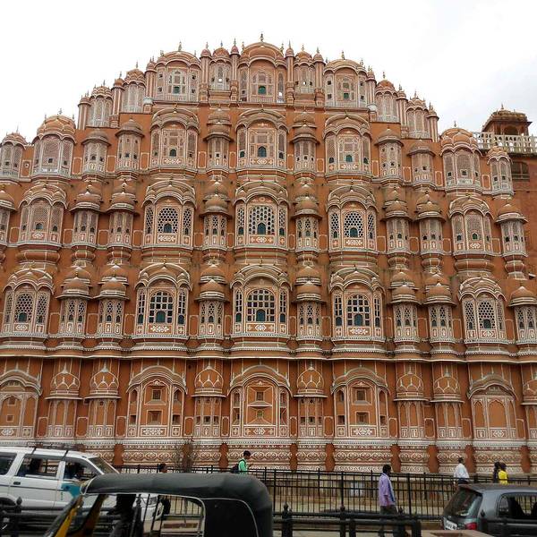 风之宫殿这是斋普尔的象征,18 世纪中叶的建筑杰作,仿佛一座粉红色的小山丘,宫墙上密密麻麻布满...风之宫殿这是斋普尔的象征,18 世纪中叶的建筑杰作,仿佛一座粉红色的小山丘,宫墙上密密麻麻布满 953 扇窗,用红砂石镂空雕刻,呈半八角形。窗户设计精巧,让凉风轻轻透进来,风凉水冷。在风宫还镶嵌着许多彩色...风之宫殿这是斋普尔的象征,18 世纪中叶的建筑杰作,仿佛一座粉红色的小山丘,宫墙上密密麻麻布满 953 扇窗,用红砂石镂空雕刻,呈半八角形。窗户设计精巧,让凉风轻轻透进来,风凉水冷。在风宫还镶嵌着许多彩色玻璃,每当浩月当空,整座风宫闪闪发亮尤如繁星万点,故而又被称为是“月宫”。 展开