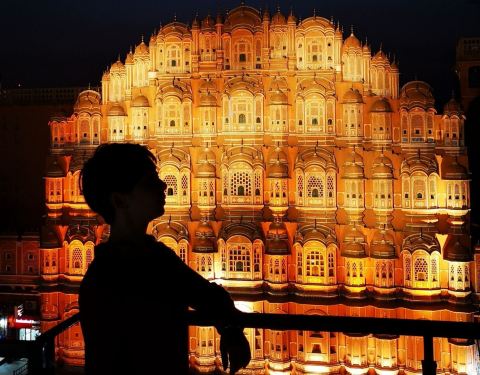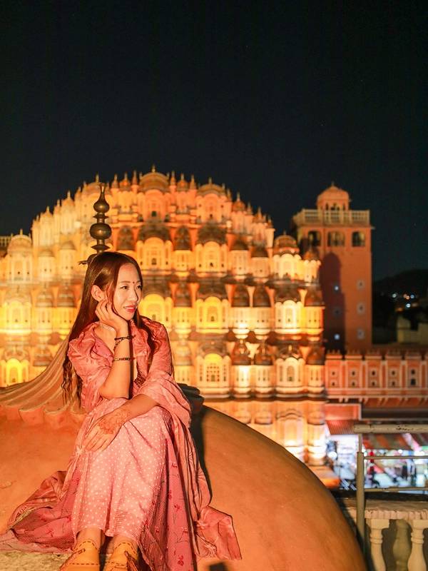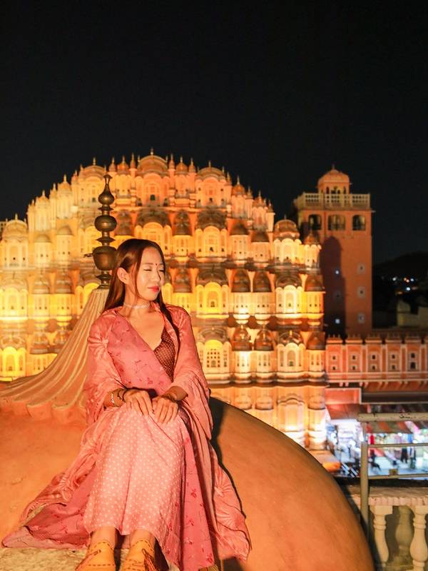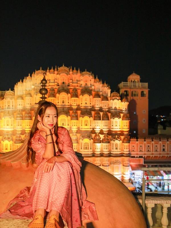 📌作为斋浦尔的网红打卡地,风之宫殿每天游人如织。众所周知,最佳拍摄机位是在风宫对面的阁楼露台上,而只要走到风宫对面的大街上,自然会有当地人招呼你。如果只是为了拍照上露台是需要支付小费的,如果没记错大概每个人100卢比,但如果在餐厅享用饮料或餐食就可以免去这些费用了