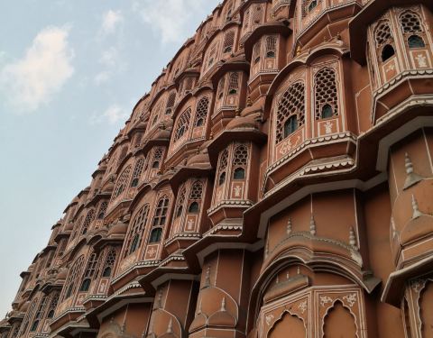 风之宫殿位于斋普尔城区的主干道上,是斋普尔最具特色的地标建筑风之宫殿位于斋普尔城区的主干道上,是斋普尔最具特色的地标建筑。是一面巨大的粉红色墙,五层建筑看起来就像是一个精致的蜂巢,把墙里墙外分成两个世界。
