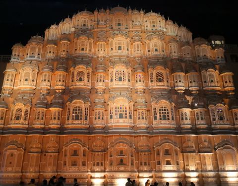位于斋普尔的风之宫殿是到了这个粉红之城必来观赏的地方之一了吧。晚上灯亮的时候,夜景看起来会更美位于斋普尔的风之宫殿是到了这个粉红之城必来观赏的地方之一了吧。说是宫殿,其实就是一片墙,第一眼望过去密密麻麻的八角形窗户真的蛮有特色,而且其特殊的设计使得里面能够望出来看到街景,但街上的人望不到里...位于斋普尔的风之宫殿是到了这个粉红之城必来观赏的地方之一了吧。说是宫殿,其实就是一片墙,第一眼望过去密密麻麻的八角形窗户真的蛮有特色,而且其特殊的设计使得里面能够望出来看到街景,但街上的人望不到里面的情况。个人觉得最有特色的就是外观了,里面可根据自己的情况可进可不进。晚上灯亮的时候,夜景看起来会更美。 展开