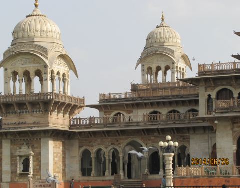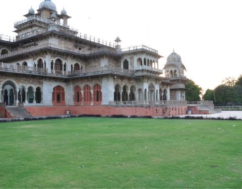 斋浦尔有"粉红之城"的美誉,那是因为1876年,当时的斋浦尔国王拉姆·辛格为了迎接喜欢粉红色彩的英国威尔士王子阿尔伯特·爱德华的光临,下令把整座城市涂成了粉红色。 阿尔伯特大厅也是为了迎接威尔士王子的到访而修建的,现在则是阿尔伯特大厅博物馆的所在地。阿尔伯特大厅由斯温顿·雅各布爵士设计,融合了英国和印度北部的建筑风格。1887年揭幕后,它就成为了新斋浦尔的骄傲。博物馆有一些有趣的展出:部落服装、姿态各异的瑜伽模型、透视画、木偶、地毯以及乐器。
