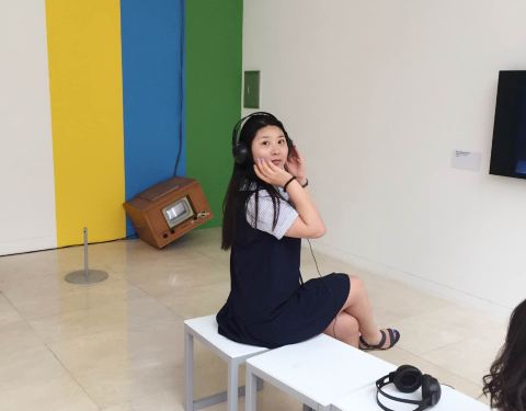 坐地铁到市厅站下,12号出口或者1号出口都行,因为去首尔市立美术馆的路就在这两个出口中间的小路里。沿着这条夏意盎然的小路走进去,路边草木茂盛,既能遮阳,又能散步。右手边围着的宫殿是德寿宫哦,要是来早点还能去宫里游览一番,外面就是有名的德寿宫石墙路啦。走了一会看到地面还有指示方向的标识,注意脚下,前方离首尔市立美术馆还有100米。到达。美术馆地理为止真心不错,周边温泉,树林,花花草草,环境非常好,在这种环境下才能充分感受文化的洗礼吧。首尔市立美术馆的正门,古老肃穆。门口上写了观览时间,注意周一休馆哦,破竹特地查好时间周二来的。美术馆里面有6个展览厅、艺术体验空间、音像信息室、讲座室、咖啡厅以及商店,设施完善。企划展主题“High Light”,让我们走进美术展看看这是什么含义吧。现代美术比较难理解,但这里的照片直观又令人震撼,众多珍贵藏品,随便放几张给大家看看。3楼,多个展厅,喜欢这里的展厅氛围,作品并不会一窝蜂摆很多,层次有序,宽敞明亮,是个可以静下心来欣赏作品的地方。这幅画着实是最令破竹印象深刻的一副巨作,展现的是山间众多猛禽的景象,笔锋略微抽象,破竹也不是美术界专家,外行看热闹也是看得津津有味。这里不仅有美术作品,还有几个录像馆,将近360度的大屏幕,非常震撼。美术馆走廊边也有许多艺术作品,充分发挥想象力才能略略窥探艺术家们的脑洞。剩下的就是些雕塑作品了。下面这个是所有作品中面积最大的藏品,貌似是一名女士躺在床上的景象,不知道艺术家是要表现什么意图,有人能猜到吗?近处看人物的表情,很生动,尤其她的眼神似乎在叙说着什么故事,破竹站在她面前非常的渺小哈哈。