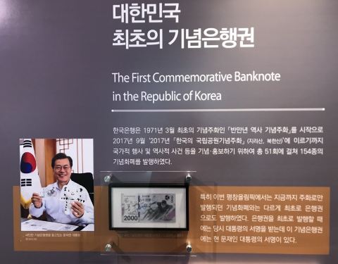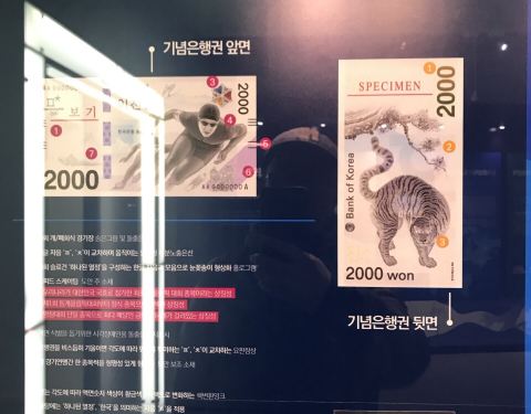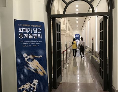 就设在韩国银行内。从明洞过来走一会就到了。就是新世界对面的大楼。 里面展示了不仅是韩国的银行和货币知识,还展示着世界各国的各种货币。认真琢磨一下,很有收获。还有很多孩子们喜欢的环节。周末有许多老师及家庭带着孩子过来学习。 目前是平昌冬奥会时段,有相应的冬奥会货币特展。参观后了解到这一届冬奥会纪念钞竟是韩国的头一张纪念钞票。