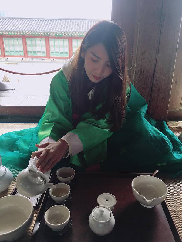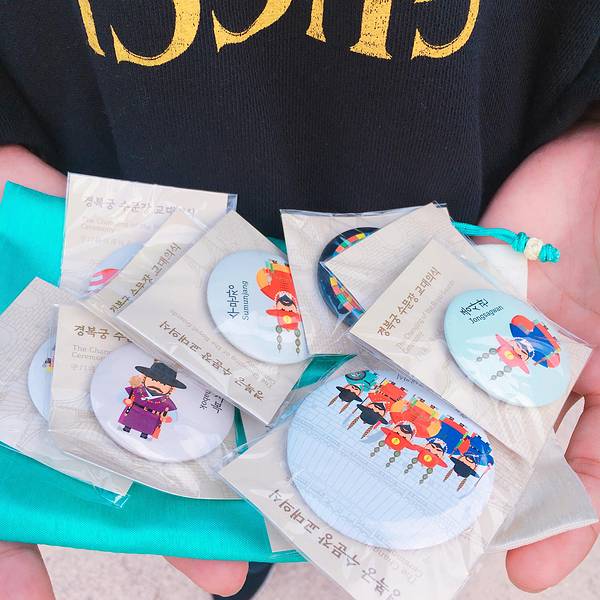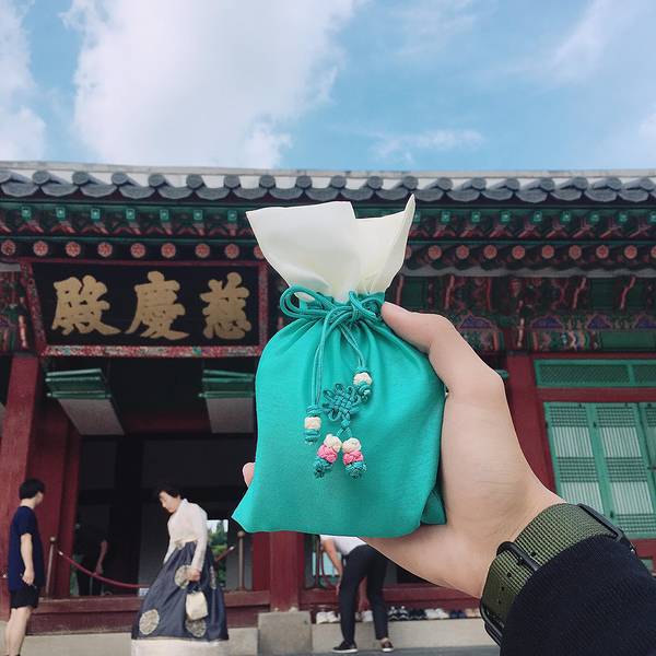 景区之后就有工作人员引导着更换衣服~~没有租韩服的我捡了个大便宜啦~不仅有免费的茶喝,还有好吃的小糕点体验课结束了之后,工作人员还发了一个小荷包给我们,打开一看是景福宫的纪念胸章,这个旅行体验不要太棒哦,有的吃有的喝还给小礼物~~回去的路上遇到的都是穿着韩服的小姐姐,我好想跟他们格格不入呢 展开