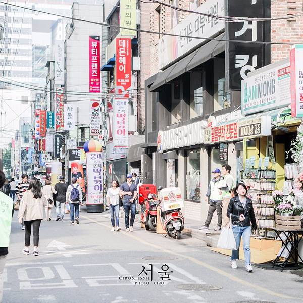 弘益大学,好玩儿的好看的应有尽有!今天的最后一站: 弘益大学 。这是一个以艺术为主的大学,离梨大并不远。校园内中规中矩好像没什么看点,但校园外那就是一个花花世界,好吃的好玩儿的好看的应有尽有。特别是美女帅哥,多得有点儿让人眼花缭乱。