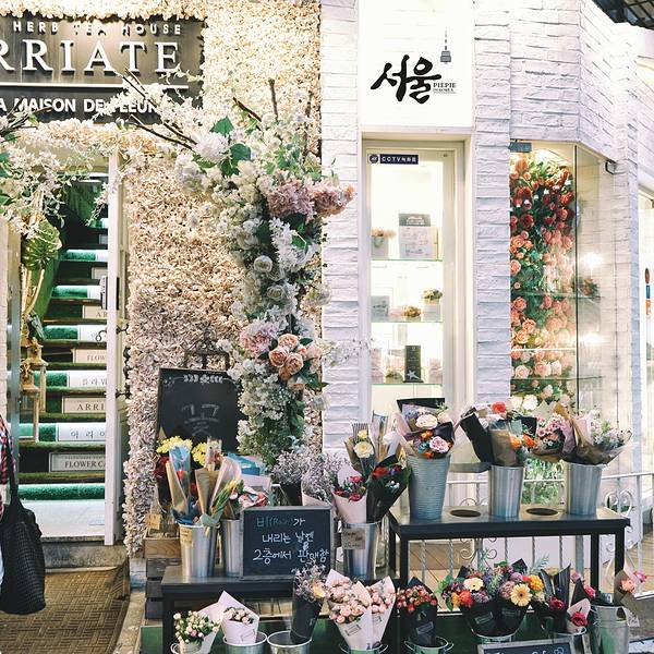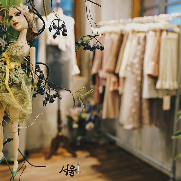 一家深藏在花丛中的小店——LIZE AND MILKCOCOA。这家小店极度适合少女心爆棚的菇凉,各种小花裙子挑花眼啊~首尔 真的是一个从不缺乏清新文艺的城市,如果你认定这里除了shopping,只剩下大酱料理.....恐怕那些藏在精致店铺后商家的小心思,你是终无缘一见了。