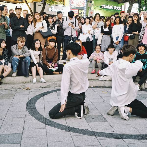 傍晚来临,各种街头表演相继开展了起来。有的只是为了挣点儿小钱,有的为了丰富自己的表演经验,有的为了被娱乐公司的星探发现,也有的是已经出道去街头公演的艺人。