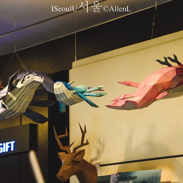 唉,还是那句话——隔着玻璃的观赏夜景,都是在“耍流氓”。不过顶层除了夜景观光,还有不少艺术作品供游人欣赏。江南一带的确更加繁华,汉江在夜色下绚丽动人。观景台的一角,脚下的天花板也是透明玻璃,有些悬空的意思。窗前的剪影雕塑,与首尔夜景相映成趣,呈现出艺术与城市景观融合的美感。类似拼图性质的油画作品,两位游人正在忙活着,眼看大功告成。许愿墙。汉江沿岸的公路上车水马龙,车辆在这么远的距离下观看,都成了星星点点的棋子。我参观的时间大概是在19点左右,理应是欣赏夜景的高峰时段,但这里的游人特别少,比较冷清。参观完毕后乘坐电梯返回,不过出口是另一侧,会经过水族馆的海洋动物壁画长廊。 展开