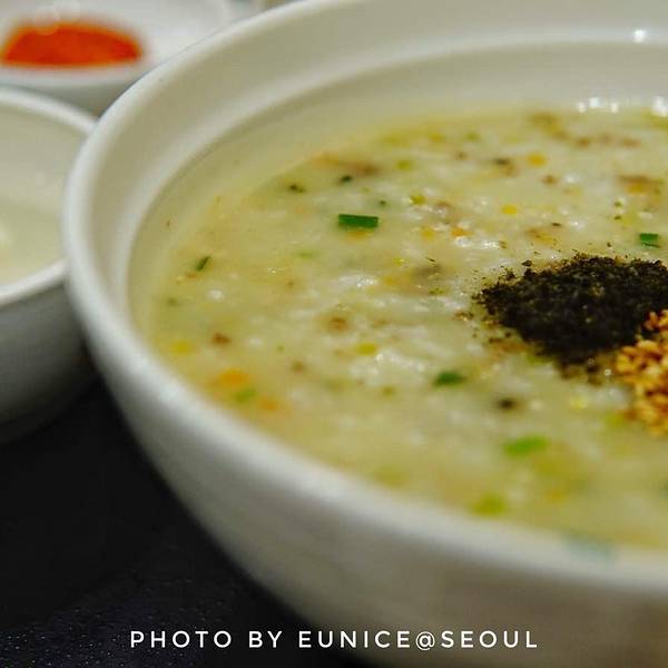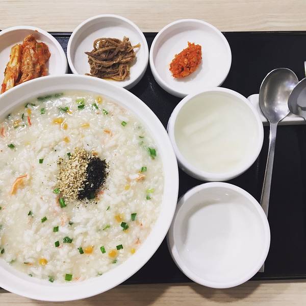 今天是老姐和二姨回国的日子。为了确保不会误机,他俩决定跟我们分开旅行。突然回到俩人的旅行觉得老空虚了, 既然这样,就先懒散的睡个懒觉咯,差不多睡到10点,笃笃悠悠的出门觅食。吃了这么多天韩餐,不是炸鸡鸡排就是辣拌饭辣猪蹄,口味实在太重,加上还没有蔬菜中和,果断是需要来点清爽的清清肠。搜了搜大众点评,有一家米粥评价不错,粥嘛,一定不会出错,说走就走! 看了看地图,选了家顺路去下一个景点的分店。再次吐槽首尔的坡路,真是每每走到心累。心更累的是小岔路和小弯道太多,百度地图经常导不出来,路盲真是不知道走了多少弯路哦…更何况我挑的这家分店还在一个大楼里…最后的最后还是靠网友评论里的一张晒图定位了地标才找到…( ・᷄ ᵌ・᷅ )店面好笑,只有4,5张桌子。粥品的味道还可以吧,不功不过~香菇牛肉粥蟹肉粥
