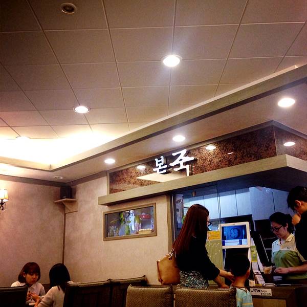 本粥 据说,这是韩版《花样男子》里,金丝草打工的地方,粥的分量很大,一碗下肚,暖暖的,很舒服。 用料十足,虾,鲍鱼粒,鱿鱼,蚝仔啥都有,中午以后来,避免人龙吃好粥。2009年,一部《花样男子》让李敏镐红遍亚洲,作为剧中女主角金丝草打工的粥店,并且已经拥有1000多家分店的高人气连锁店,本粥在韩国早就是家喻户晓的百姓名店了。 本粥的小菜无限量供应,吃完可以让服务员再加。 粥的分量很足,吃的时候将紫菜粉、芝麻与粥拌匀,味道会更好。 海鲜粥里大概有7、8个虾仁还有一些蛤蜊,相比于别家的粥,本粥用料实在,性价比高很多。