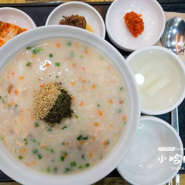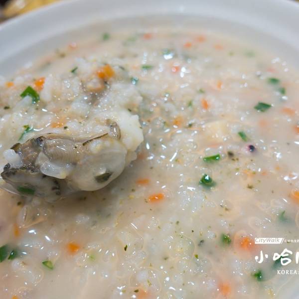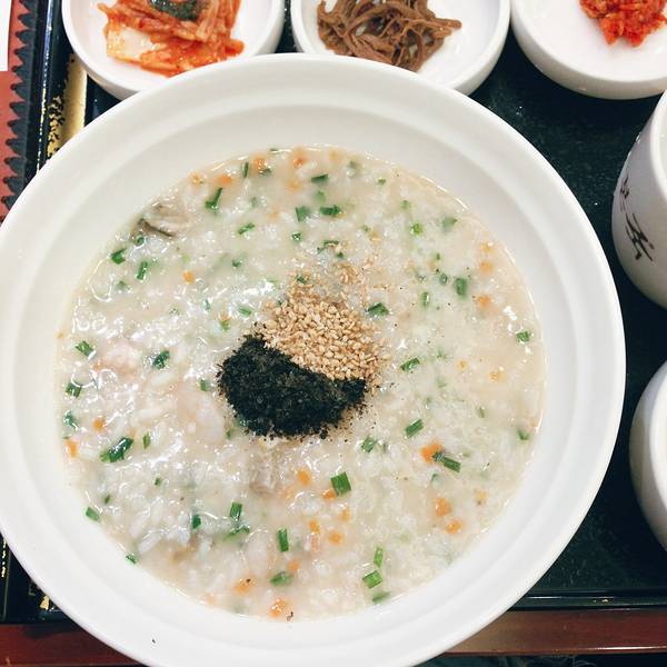 清潭洞JYP旧公司附近 主营各种类型的粥,连锁店,有中文菜单。 我点的是生蚝粥,端上来是一碗绿油油的不明物体。与众不同的外观下,是绵软细腻的口感,入口即化超满足。生蚝藏在看不见的地方,数量不在少。这是一...