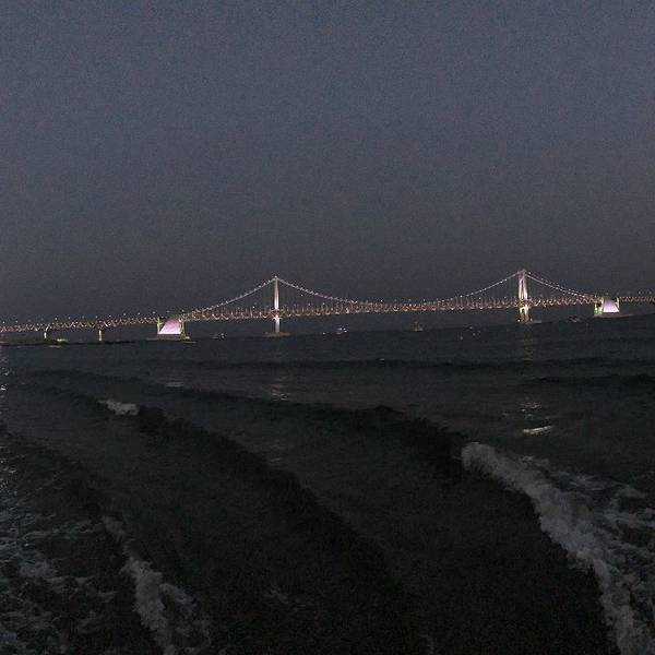 白天在海云台玩耍以后,晚上临时决定去看一下广安里,因为在釜山除了海云台,其次有名的就是广安里了白天在海云台玩耍以后,晚上临时决定去看一下广安里,因为在釜山除了海云台,其次有名的就是广安里了。我和表妹是坐公交车到达的这里,下了车以后走了一段距离,到了海边一眼望去,没有很惊人。
