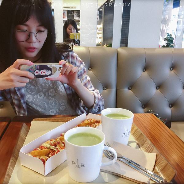 到了釜山就像进入了一个乱码世界,我们瞬间从两个知识女青年沦为大字不识一个的文盲。去酒店check in后,在门口的巴黎贝甜打发了下午茶时间。同框照来一张~