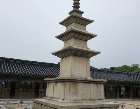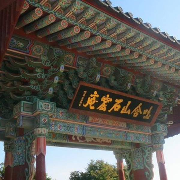 石窟庵位于庆州市吐含山,与相距4公里的佛国寺在1995年被列为世界文化遗产。石窟庵同时也是韩国第24号国宝。石窟庵与佛国寺一起由新罗景德王时期的金大城创建。石窟庵起初被称为:石佛寺,是金大城为他的前生父母所建,而佛国寺是为他的今世父母所建。石窟庵规模不大,石头整整齐齐的堆起来,走进去感觉就像在一个洞穴里,所以叫石窟庵。庵里供奉的是释迦摩尼的佛像,站在下面抬头瞅着高大的佛像,心底会莫名涌起一股神圣感。因为佛像的方位正对着东方,日出之后阳光会打在佛像上,所以韩国人又将这座佛像称为“新罗人的微笑”。