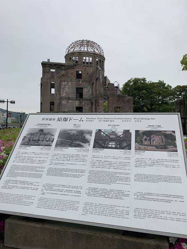 既然到了广岛,就不得不来看看原爆点遗址,来这的基本上都是欧美游客和日本修学旅行的学生团体既然到了广岛,就不得不来看看原爆点遗址,来这的基本上都是欧美游客和日本修学旅行的学生团体。原爆点旁边还有一些公益组织提供的文献资料,翻译成了各种语言,放在路边供人取阅。