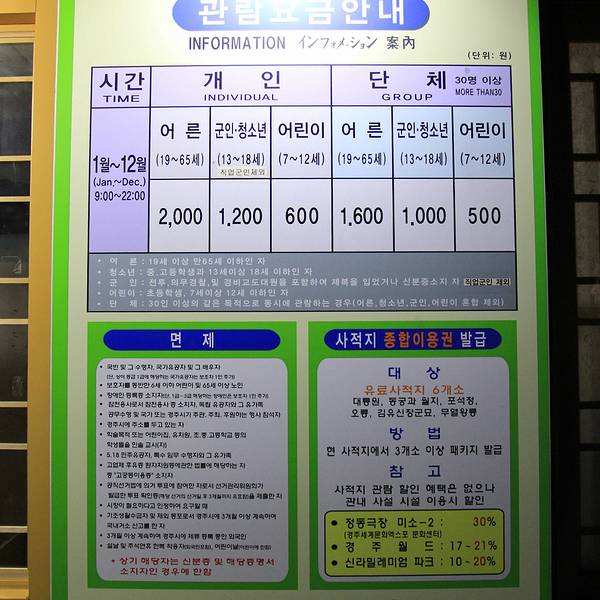 * 庆州长途汽车客运站前面的汽车站乘坐11路或者600-609路,在庆州国立博物馆站下车,步行3分钟。乘坐汽车时间大约10分钟。