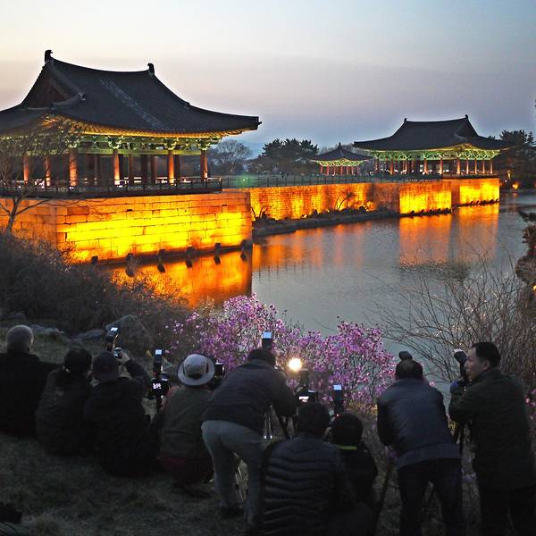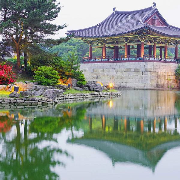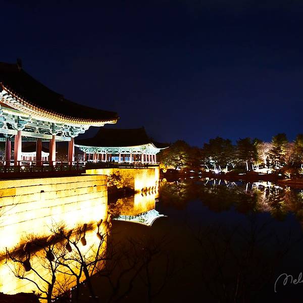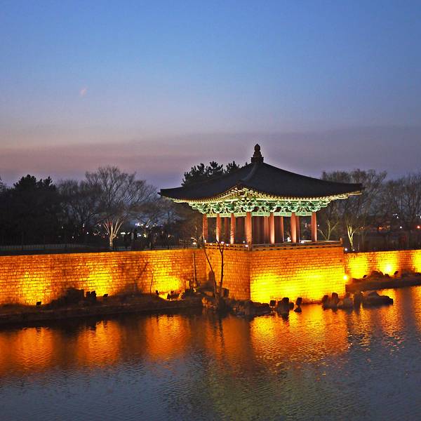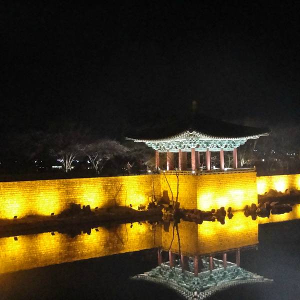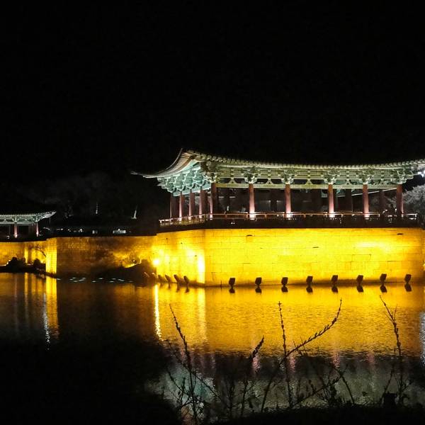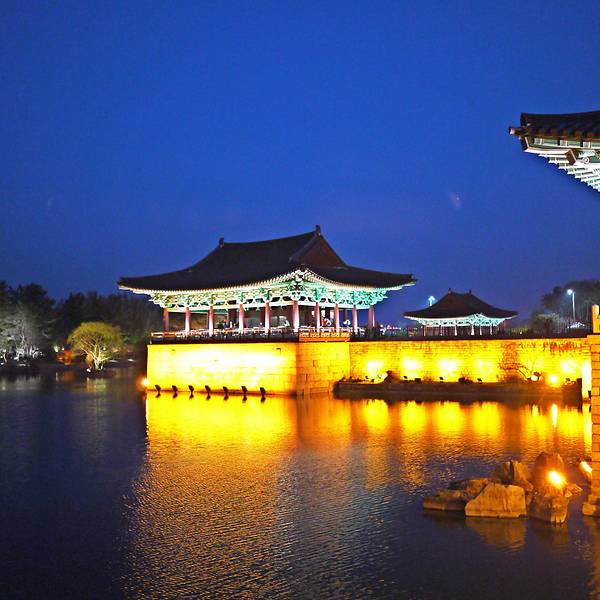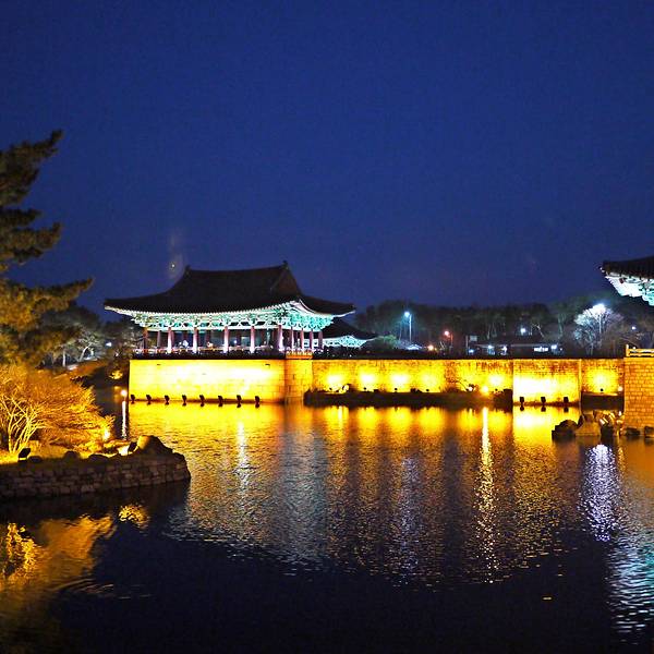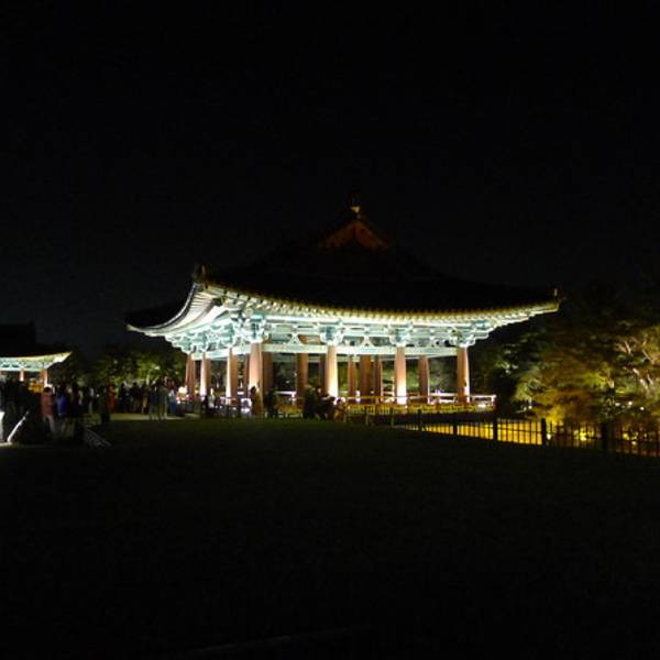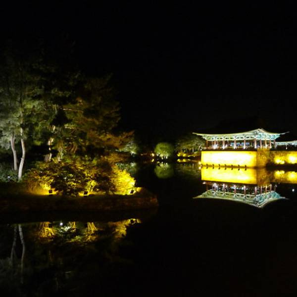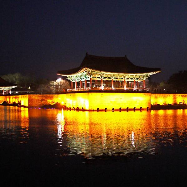 韩国最古老的史书《三国史记》(AD1145创作)记载, 新罗(BC57-AD935)文武王(AD661-681在位)14年(AD647)命令在宫城里挖一莲花池, 做成一座小山, 种上花草,还喂养珍奇动物。雁鸭池即是当时挖出的莲花池,位于月城(AD101年建造的新罗时代的城)外侧东北部