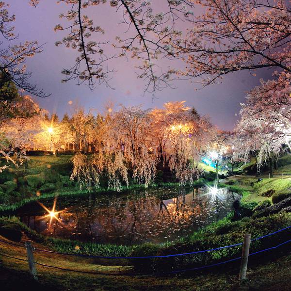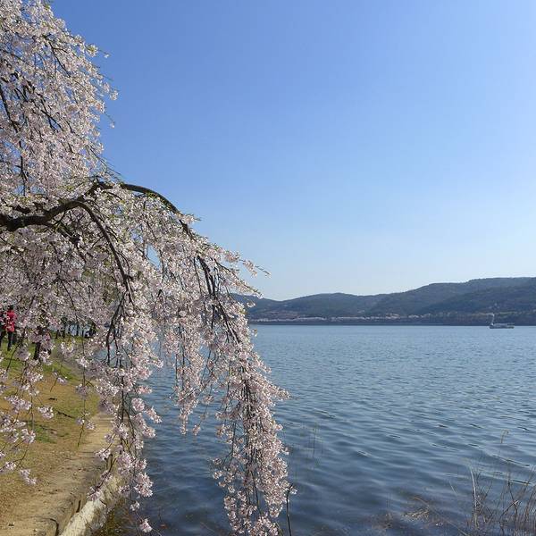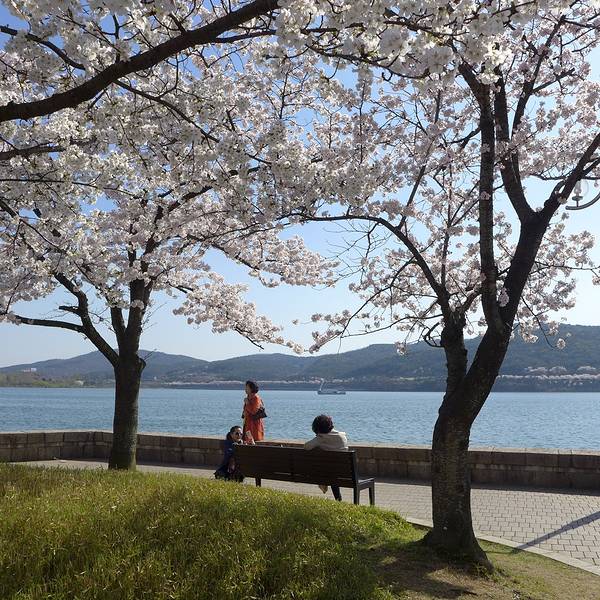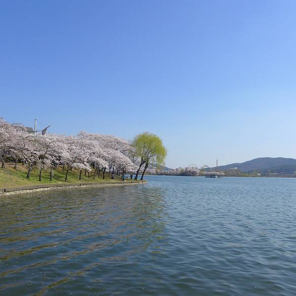 一个国际性的观光园地,沿着湖边有长长的散步小道,道边樱花树茂密。