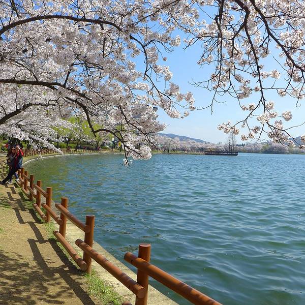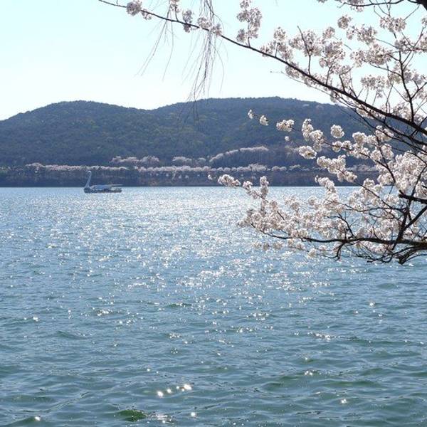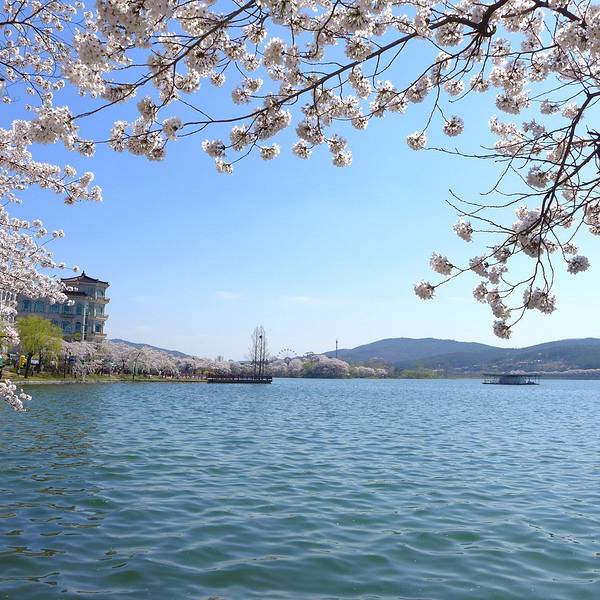 夜景非常美,很浪漫。庆州著名的观光地,4月份樱花路,樱花满天。附近有很多美食庆州著名的观光地,4月份樱花路,樱花满天。夜景非常美,很浪漫。附近有很多美食。可以环湖骑单车,还有鸭子小船坐。旁边还有庆州世界(游乐园)