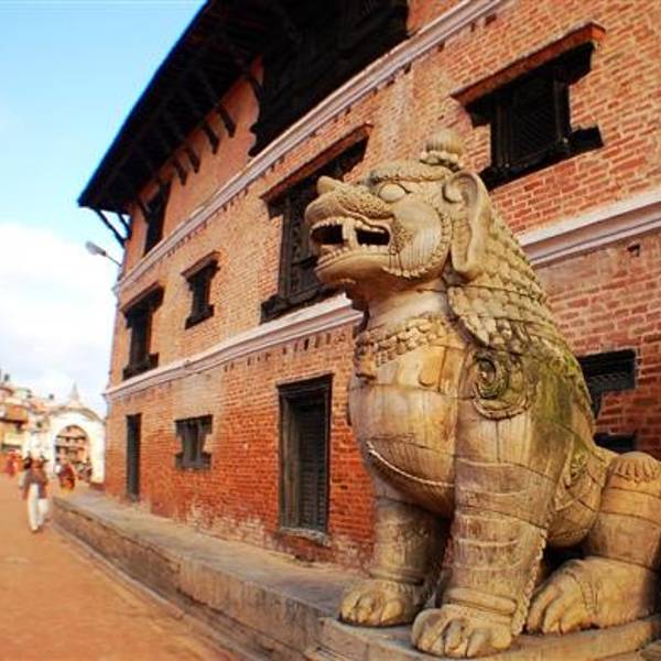 加德满都王宫广场曾是城邦国王加冕登基的地方,如今,这座广场是加德满都辉煌的世界文化遗产。 1. 精美的寺庙与宫殿 加德满都王宫广场上古迹众多,共有50座寺庙及宫殿,由红砖砌成的建筑样式很有特色,雕刻十分精美,值得细细品味。 整个广场是由三个分散的广场组成的。南面是空旷的Basantapur广场,西面是加德满都王宫广场的主区,可以游览各种古寺。东北部则是加德满都王宫广场的副区,皇宫旧址的入口就在那里。向东北方向延伸的一片开阔地带叫Makhan街,它曾经是加德满都的交通要道,现在已经成为一条很有名的步行街。 加德满都王宫广场上的景点主要有独木庙、阿育王比纳亚克寺、纳拉扬神庙、湿婆-帕尔瓦蒂庙、哈努曼多卡宫、黑贝拉伯等。很多游客会沿着台阶爬上寺庙的塔基,居高临下俯瞰周围的市井百态,这正是体验加德满都王宫广场的一个好方式。 2. 独木庙、阿育王比纳亚克寺 游览加德满都王宫广场通常从南边的独木庙开始,这是整个加德满都谷地较古老的建筑,甚至连加德满都的名字也源于此。这座三重屋檐的寺庙是用一整棵婆罗双树取材建造而成的,在其中间的木质围栏里供奉着乔罗迦陀神像。每天清晨这里会显得热闹非凡,各种蔬菜摊贩开始营业,熏鱼、香蕉叶和金盏花等摆满了周围的走廊。 在独木庙的北侧、玛卢路(Maru Tole)的起点有一座小巧的阿育王比纳亚克寺(Ashok Binayak Temple),有着镀金的屋顶,供奉着象神。 3. 纳拉扬神庙、哈努曼多卡宫、特里布文博物馆 纳拉扬神庙前跪着一座精美的迦卢荼(鹰头人身的金翅鸟)雕像。 继续往北边走去,可以看到湿婆-帕尔瓦蒂庙,寺庙门口蹲着两个巨大的石狮子,正上方则是湿婆和帕尔瓦蒂两夫妇的雕像,可谓是加德满都王宫广场的代表性景观之一。寺庙北侧还有一座大钟,只在旧皇宫举办某些仪式时才会被敲响。 加德满都王宫广场的东侧是旧皇宫——哈努曼多卡宫,是一座新古典主义风格的白色建筑。在大门口可以看到一座猴神哈努曼雕像,进门后即可参观部分宫院。