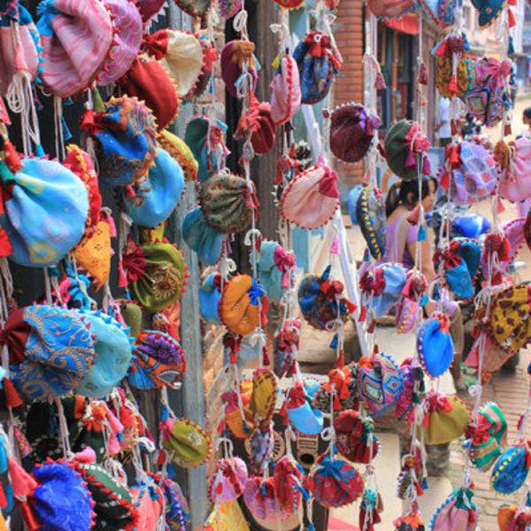我买了10个一组的手袋,还有尼泊尔纪念币、手工绣的茶杯垫、大象和各种造型的10个小面具,因为老板也说不来英语,最方便的就是拿着计算器,大家你来我往的来回按着,经过一番讨价还价之后,还是没有到我心理价位,我准备走的时候,老板最后同意了我出的价格,很是开始的感觉,合计人民币100多元。