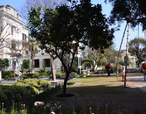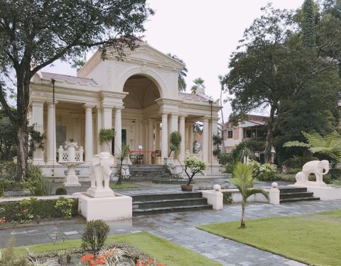 在加德满都的一处私家花园,建筑面积不大,建筑风格以西式为主,花园中种植许多树木、花草等,而且这里的阳光明媚,日光充足,许多游客喜欢来此进行日光浴。