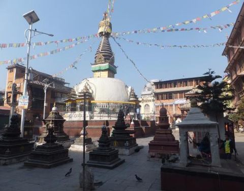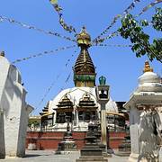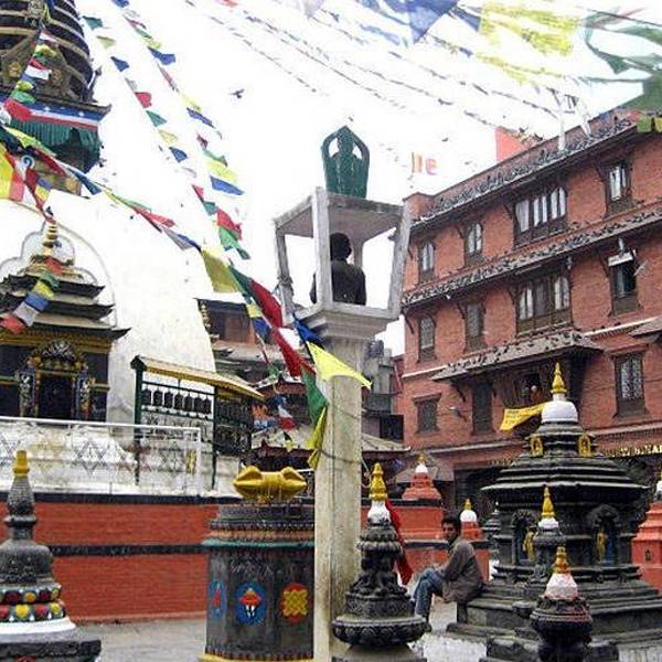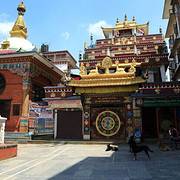 此外,佛塔旁还有一座寺院,经常可见喇嘛诵经,以及往来穿梭的信徒加德辛布佛塔的后方有一座献给天花女神Harti的双层宝塔。此外,佛塔旁还有一座寺院,经常可见喇嘛诵经,以及往来穿梭的信徒。加德辛布佛塔隐藏在泰米尔区和阿森街中间的某条小巷的夹缝中间,如果不逢人问的话,一...加德辛布佛塔的后方有一座献给天花女神Harti的双层宝塔。此外,佛塔旁还有一座寺院,经常可见喇嘛诵经,以及往来穿梭的信徒。加德辛布佛塔隐藏在泰米尔区和阿森街中间的某条小巷的夹缝中间,如果不逢人问的话,一定会错过这里。穿过巷子与巷子之间的夹道,迎面而来的是一座仿着斯瓦扬布纳寺而建的白身金顶的佛塔。简而言之,是猴庙中佛塔的复制品,建造于1650年。 展开