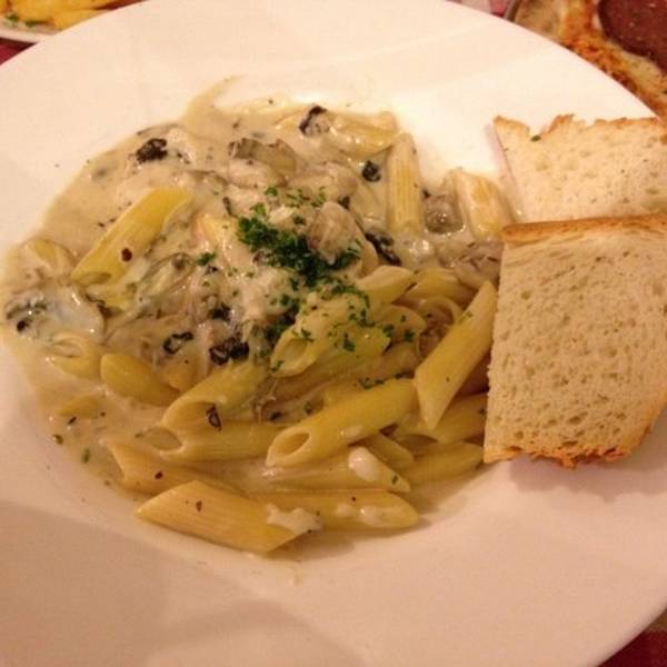 头盘沙拉,这种好吃!奶酪蘑菇意面,气味很好,口味没有想象惊艳。橄榄很赞,腌制的笋、辣椒也都很美味