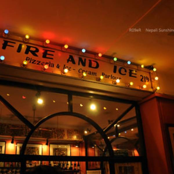 安排好住房我们就出门去寻觅吃顿好的。这个时候我就要提一下了。我们刚开始去的是网上说的很出名的珠峰牛排馆,可是呢,据说这家店不是原来那家。原来那家搬了,所以我们几个有强迫症的孩子就又去找另一家比较出名的了。fire and ice 。这家店简直离我们住的地方太近了。 推荐这家店的冰激凌,披萨也是绝顶的好吃,必胜客和这儿没得比。