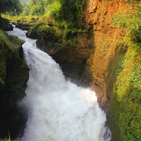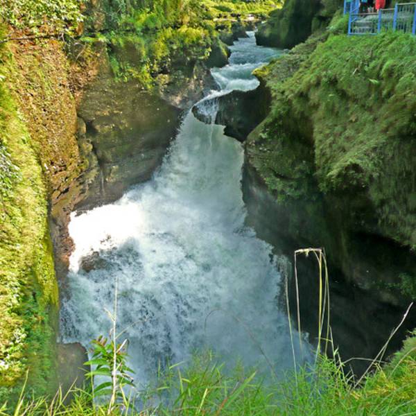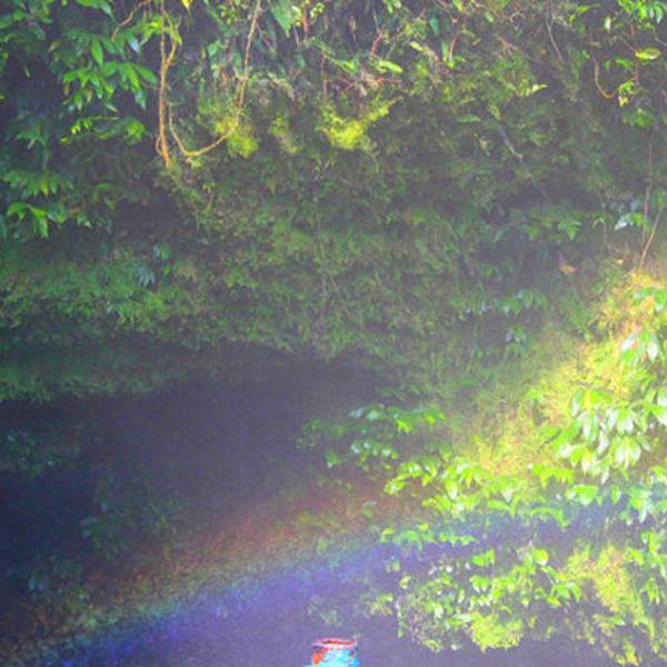 这条瀑布的奇妙之处在于它的下方是一个地下溶洞,陡然消失不见后,又从数公里外的地底下钻出来,形成一条地上河流。溶洞内常年冒着团团热气,用手可以感觉到明显的热度,水汽会在空中变换出七彩颜色。