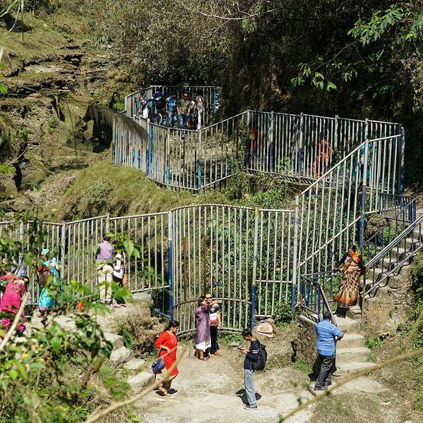 每年4月到9月是波卡拉的雨季,可我们真是太幸运了,既看到了美丽的充溢的瀑布,又没有赶上雨。瀑布大门来波卡拉一定要去看看戴维斯瀑布,这个瀑布是1961年才发现的,原本是雪山融雪不断侵蚀岩壁后形成了一条小溪,然后又把岩石融成了一个大洞。水从上面飞流直下,一下子流进深不可测的大洞变成了暗河。