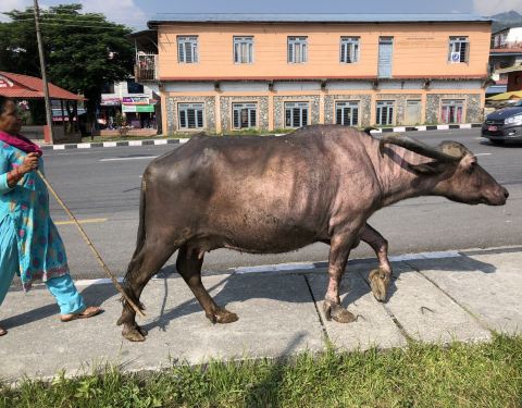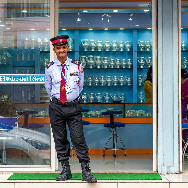 博卡拉渐行渐远,路边一座被人守卫的大门引起了我的注意,问过导游才知道那是尼泊尔的保镖培训学校。尼泊尔廓尔喀族人素以骁勇善战而著称,而到了今天,这些身有绝技的廓尔喀族人,已经变成了非常受欢迎的贴身保镖,随身相伴在富商政要的身边。长路漫漫