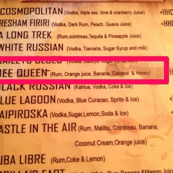 busy bee的酒单,看到这个“蜂王后”的配料就知道不愧是“Bee Queen”了