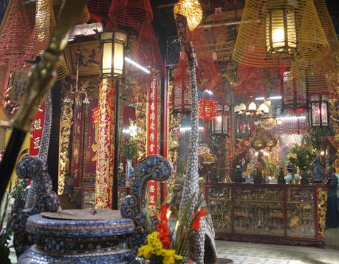 观音庙在胡志明市据说已有很长一段历史,属于文物古迹观音庙在胡志明市据说已有很长一段历史,属于文物古迹。庙宇本身不大,很快就可以逛完,据说这里香火很是兴旺,确实有不少当地人前来朝拜。