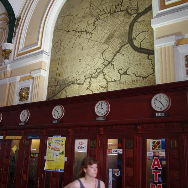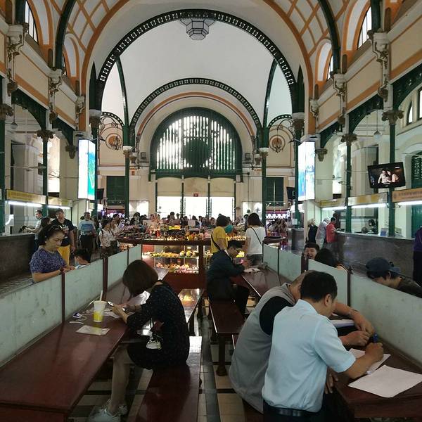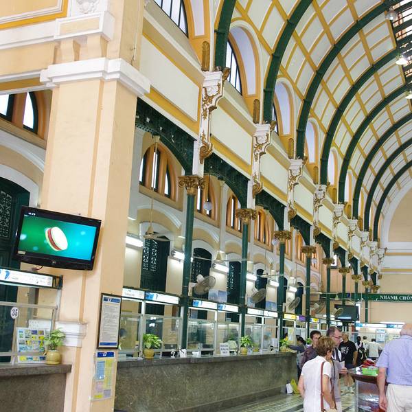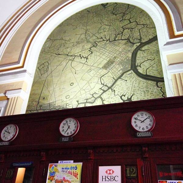 在这里,我们买了传说的西贡小姐香水中央大邮局位于教堂东边。邮局建于十九世纪末,为法国建筑师设计,大厅内装饰华丽,极富古典气息,宽阔的大厅两侧是业务柜台,中部由外至内是环形长椅,大厅左右两侧上方各有一张越南地图,据说是当年法国地理学...中央大邮局位于教堂东边。邮局建于十九世纪末,为法国建筑师设计,大厅内装饰华丽,极富古典气息,宽阔的大厅两侧是业务柜台,中部由外至内是环形长椅,大厅左右两侧上方各有一张越南地图,据说是当年法国地理学家手绘,穹顶、圆形花窗、华丽的大吊灯、花型壁灯,电风扇等,无不透着哥特式建筑的风格。