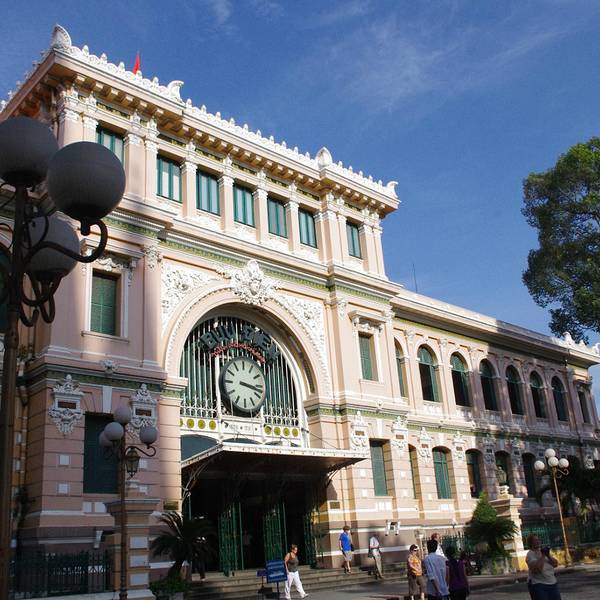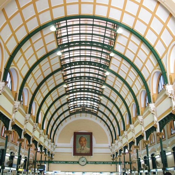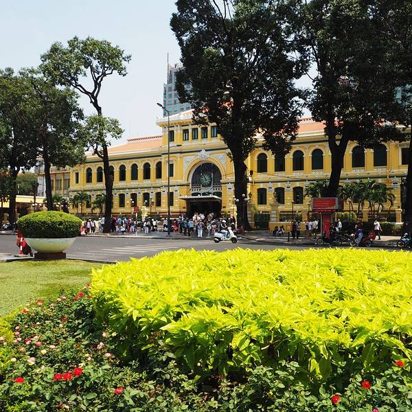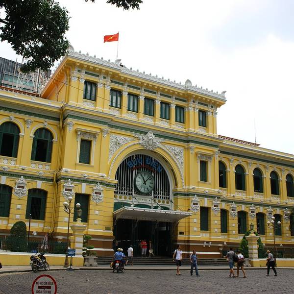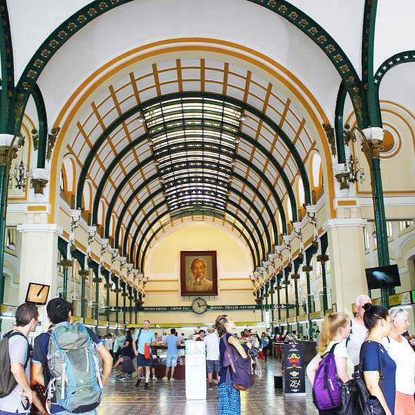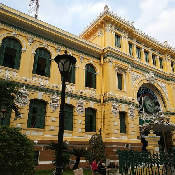西贡中心邮局是胡志明市第一座邮局,由艾菲尔铁塔的建筑师设计,所以建筑风格充满浓浓的法式风情。同时,邮局通体呈现越南建筑采用黄色,又具有越南建筑的特色。